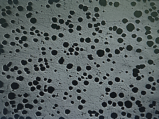 參考GBT 9441-2009判定球化率及石墨形貌,基體以珠光體為主,另有鐵素體;邊緣石墨球數(shù)量較多,珠光體比例較低,滲碳體比例小于等于3%,且彌散分布;
